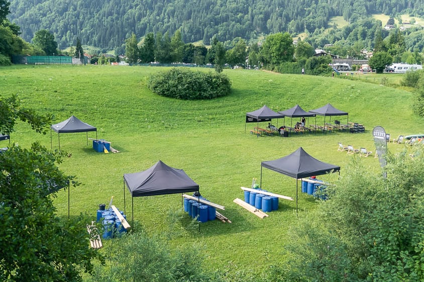 Nach dem Wassererlebnis wartet der wohlverdiente Ausklang: Im Basecamp stehen Liegestühle, kalte Getränke und eine leckere Brotzeit bereit.