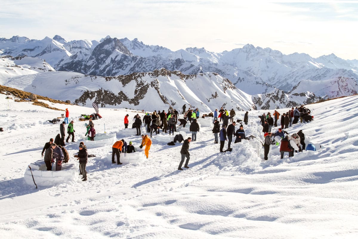 Ob kleines Team oder großer Konzern: Hoch oben auf dem Nebelhorn reicht der Schnee für jede Vision. Vom ersten Block bis zum ganzen Iglu-Dorf entstehen hier einzigartige Bauwerke – jedes davon ein Unikat.