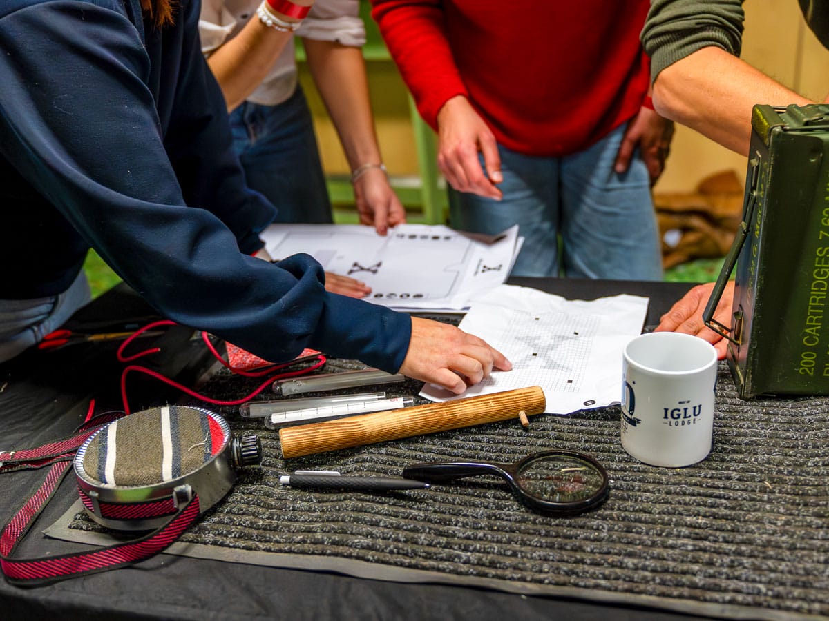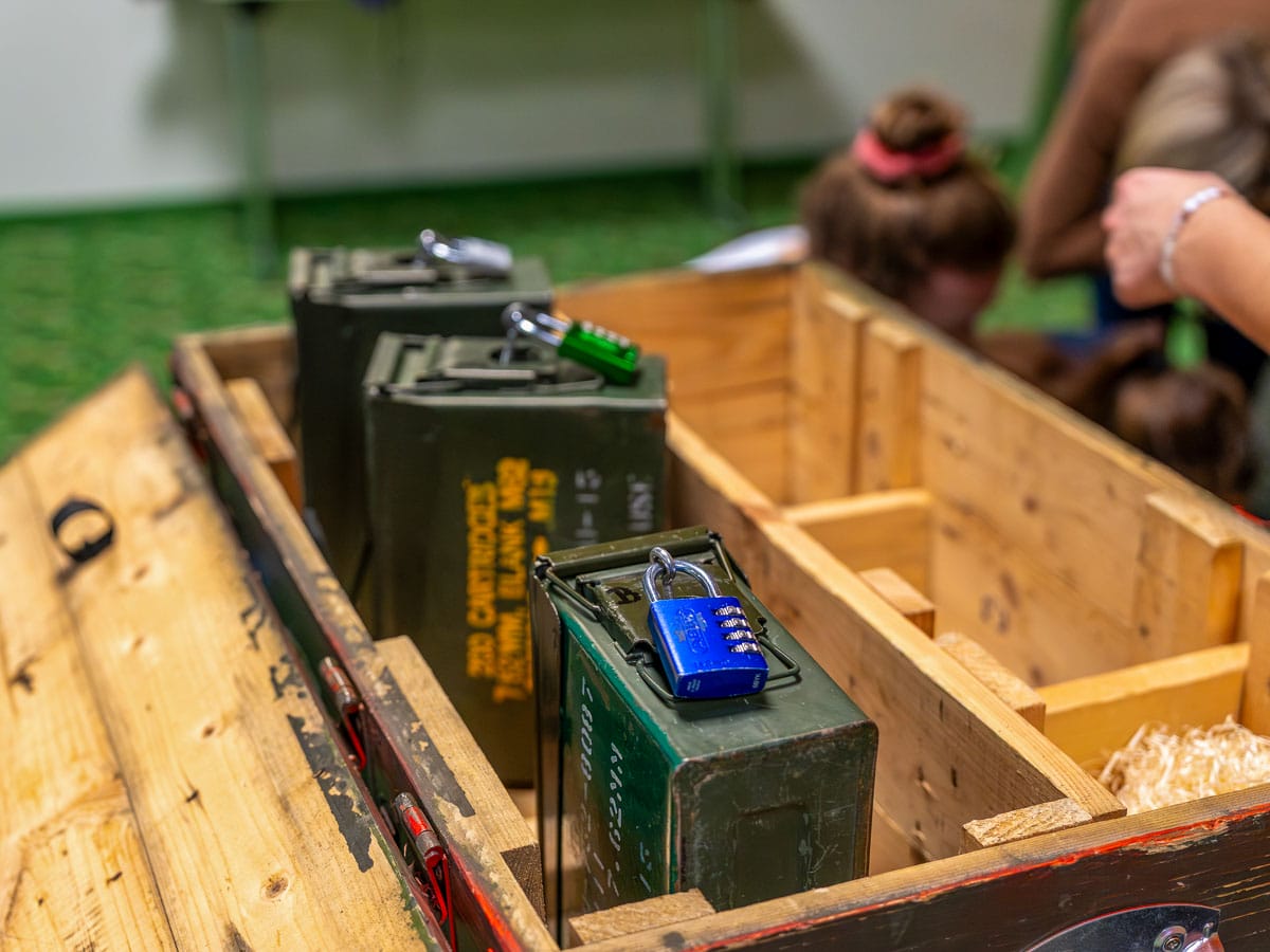 Teams lösen nacheinander festgelegte Rätsel, Codes und Aufgaben, die sie Schritt für Schritt der finalen Kiste näherbringen.