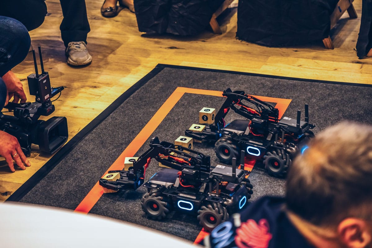 Drohnen surren durch den Parcours, Roboter bauen den Kistenturm von Pisa – und Ihre Teams lachen bei knappen Manövern und feuern einander an.
