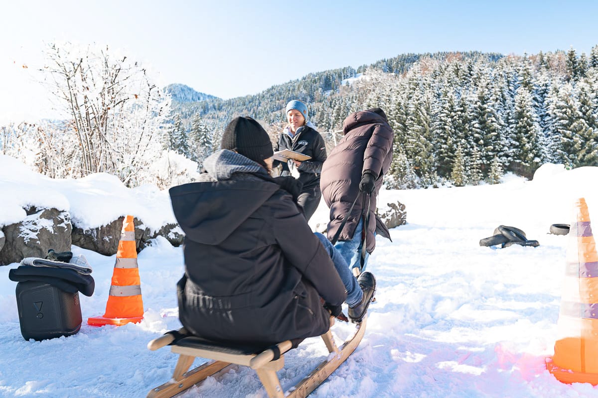 Voller Winterspaß: Draußen im Schnee treten Ihre Teams in actionreichen Winterspielen gegeneinander an – etwa beim Schneeball-Zielwerfen, unserem Lawinen-Suchworkshop oder mit Vollgas beim Zipfelbob-Rennen!