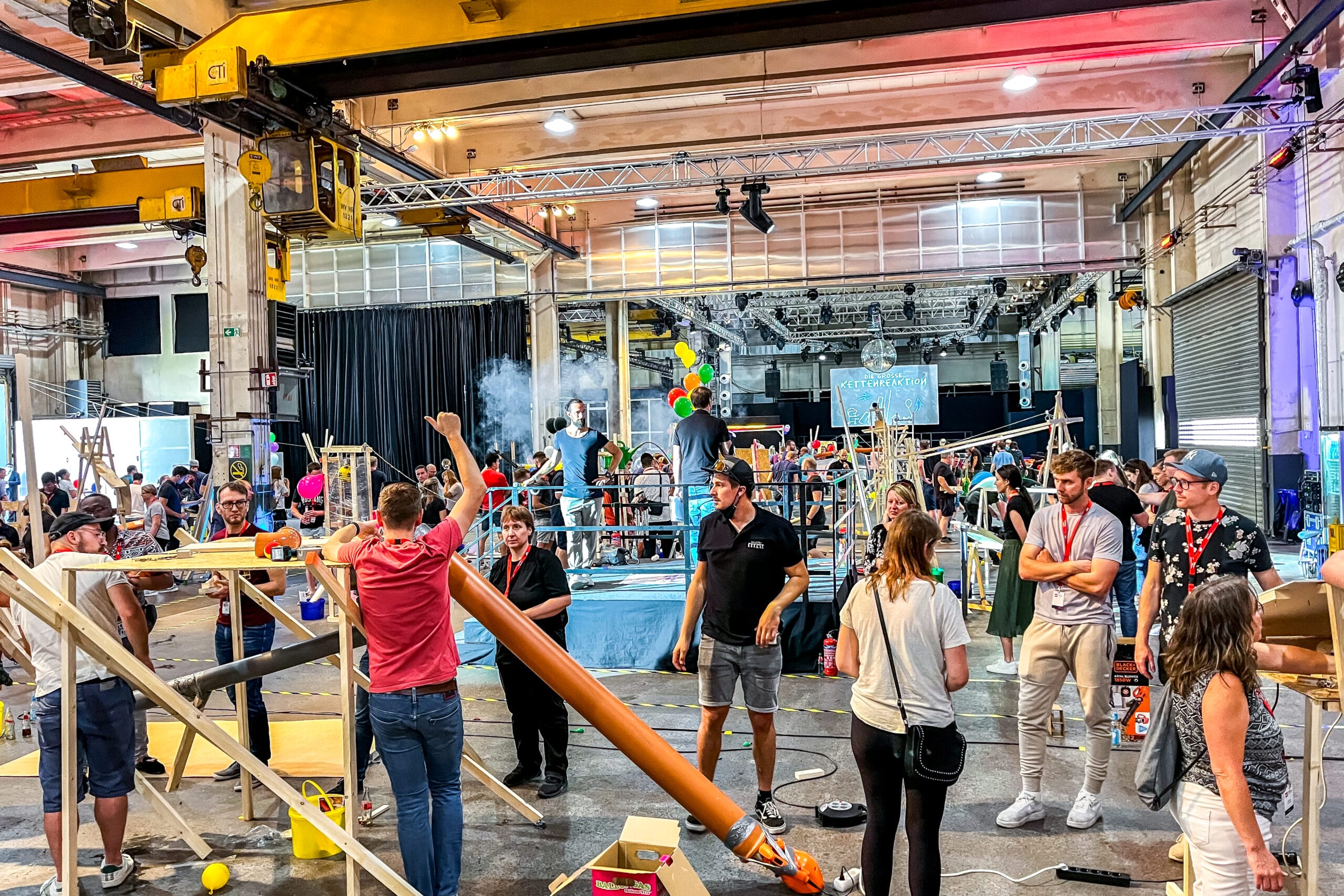 Besondere Challenge diesmal: Bei einer Veranstaltung in dieser Größenordnung ist es rein platztechnisch unmöglich, dass alle 900 Personen die Kettenreaktion aus nächster Nähe mitverfolgen.