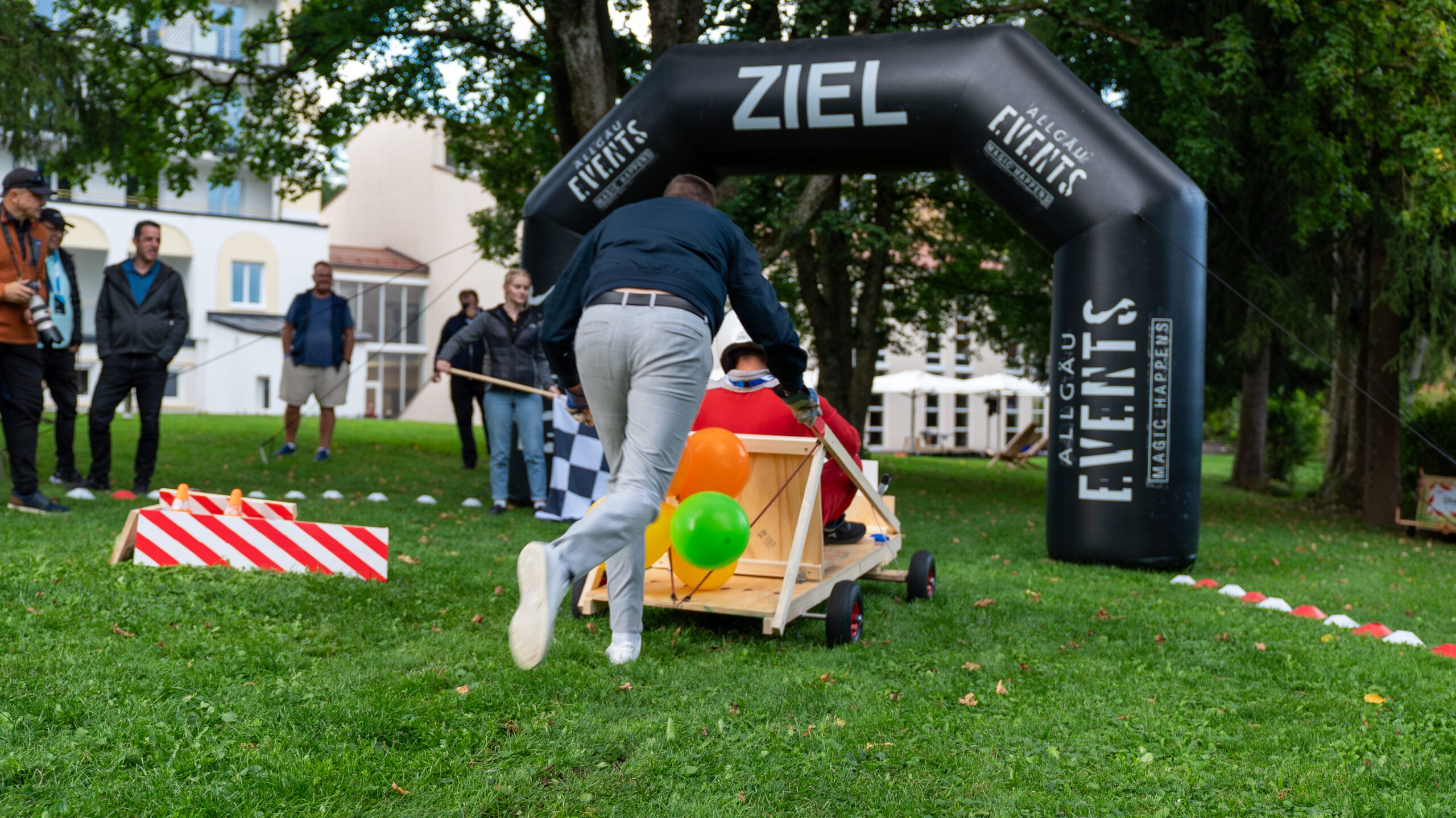 Wie das geht, das hat jüngst einer unserer Kunden beim Gipfeltreffen mit seinen elf Partnerfirmen gezeigt: Für den krönenden Abschluss der Konferenz durften wir für die 140 Teilnehmenden eine XXL-Seifenkisten-Challenge organisieren.